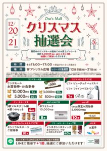 ワンズモールのお買物券や豪華景品が当たる、クリスマス抽選会を実施いたします♪